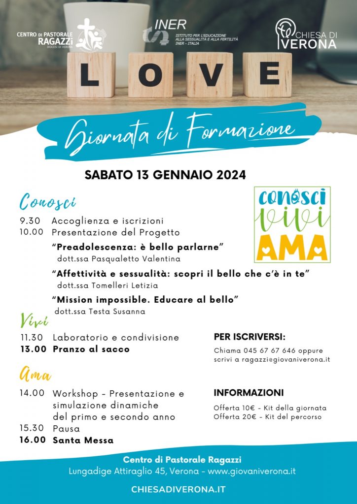 L’istituto per l’educazione alla sessualità e fertilità (INER), e il Centro di Pastorale Ragazzi (CPR), continua nella proposta formativa per catechisti ed educatori allo scopo di approfondire la conoscenza del progetto “Conosci – Vivi – Ama” rivolto ai preadolescenti.