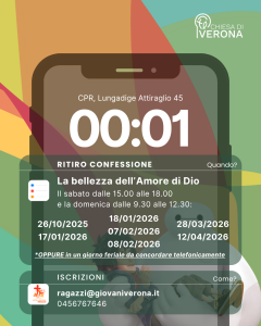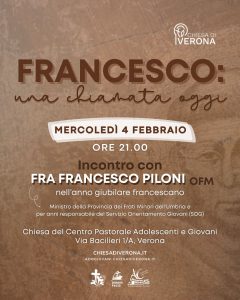 Appuntamenti Prossimi Appuntamenti 30 Gennaio Preghiera giovani “Benedetto limite” 31 Gennaio Convegno “Alex Langer facitore di pace” 31 Gennaio Giornata di spiritualità missionaria 2026 31 Gennaio Ritiro Prima Comunione CPR 31 Gennaio Messa per la festa di Don Bosco tutti gli Appuntamenti » 30 Gennaio Preghiera giovani “Benedetto limite” 31 Gennaio Giornata di spiritualità missionaria 2026 31 Gennaio Ritiro Prima Comunione CPR 4 Febbraio Francesco: una chiamata oggi – Incontro con Fra Francesco Piloni OFM 7 Febbraio Sentiero 4 – Percorso iniziale di discernimento al presbiterato 7 Febbraio Ritiro Prima Confessione CPR 10 Febbraio Percorso Samuel – Incontri vocazionali per ragazzi e ragazze 13 Febbraio Esercizi spirituali per giovani condividi su 6 Giugno 202520 Novembre 2025