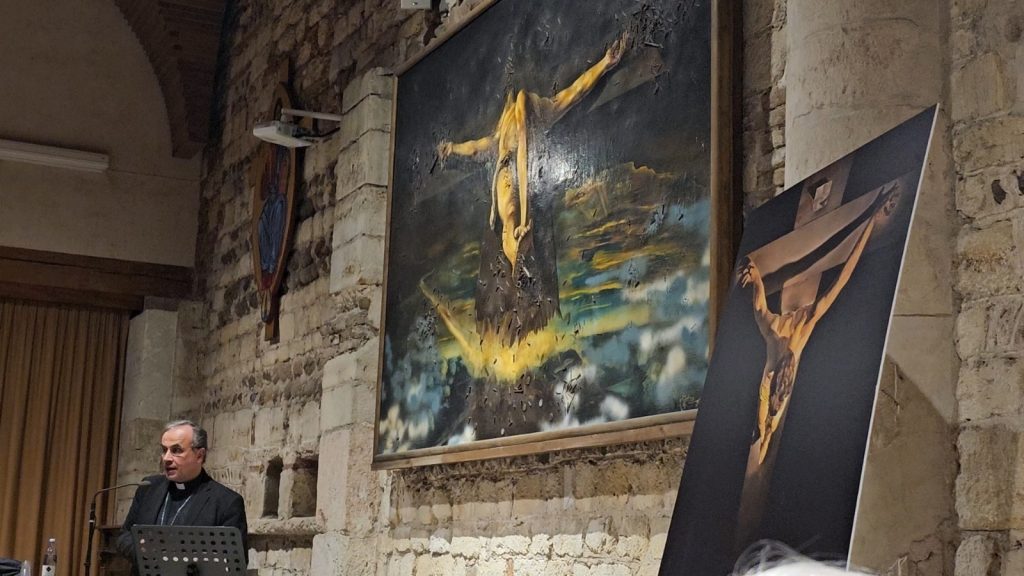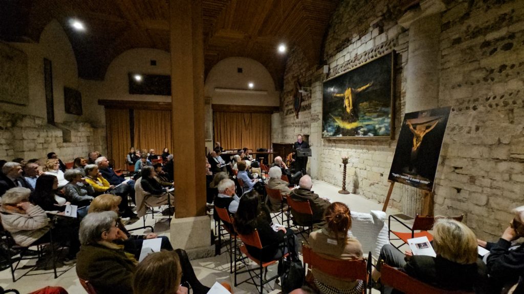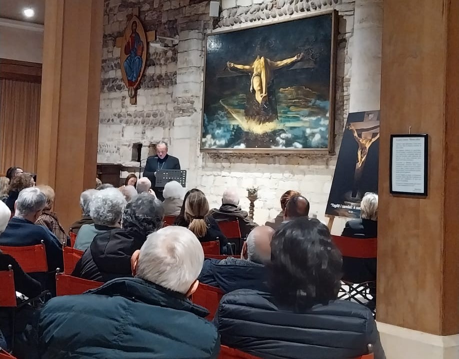 Il vescovo Mons. Domenico Pompili ha condiviso, giovedì 14 marzo, una catechesi davanti al dipinto della Crocifissione di Aladino Ghioni (1966) conservato presso il complesso della basilica di San Zeno a Verona.