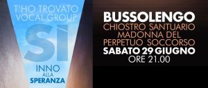 Sabato 29 Giugno alle ore 21 a Bussolengo presso il chiostro del Santuario della Madonna del Perpetuo Soccorso, si tiene lo spettacolo “Sì, inno alla speranza” dei T’ho Trovato Vocal Group. La serata fa parte degli eventi organizzati dal Santuario del Perpetuo Soccorso per celebrare i quattrocento anni del chiostro francescano. “Sì, questa piccola e grande parola” si legge nella presentazione […]