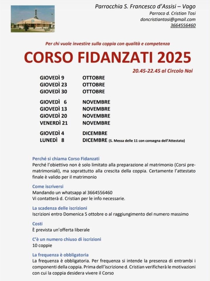 Per info, don Gianfranco Milanese: don.johnvr@gmail.com o 347 402 6325