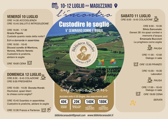 La biblioteca Leopoldina Naudet donne e fede  – situata a Verona nel complesso delle Sorelle della Sacra Famiglia – organizza anche quest’anno il Seminario su donne e Bibbia, giunto alla quinta edizione, dal tema “Custodire le soglie“.