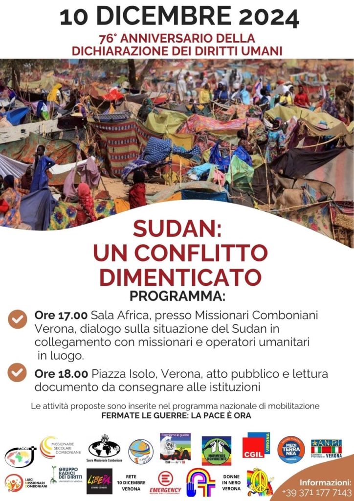 Il 10 dicembre, giornata internazionale per i Diritti umani e 76esimo anniversario della loro Dichiarazione universale delle Nazioni Unite, Verona scende in piazza per il Sudan. Più di decina di associazioni locali si riuniranno nel centro della città scaligera per gettare una luce su un conflitto dimenticato dalla comunità internazionale occidentale e per esprimere attivamente la propria solidarietà al popolo sudanese e alla sua diaspora in Europa.