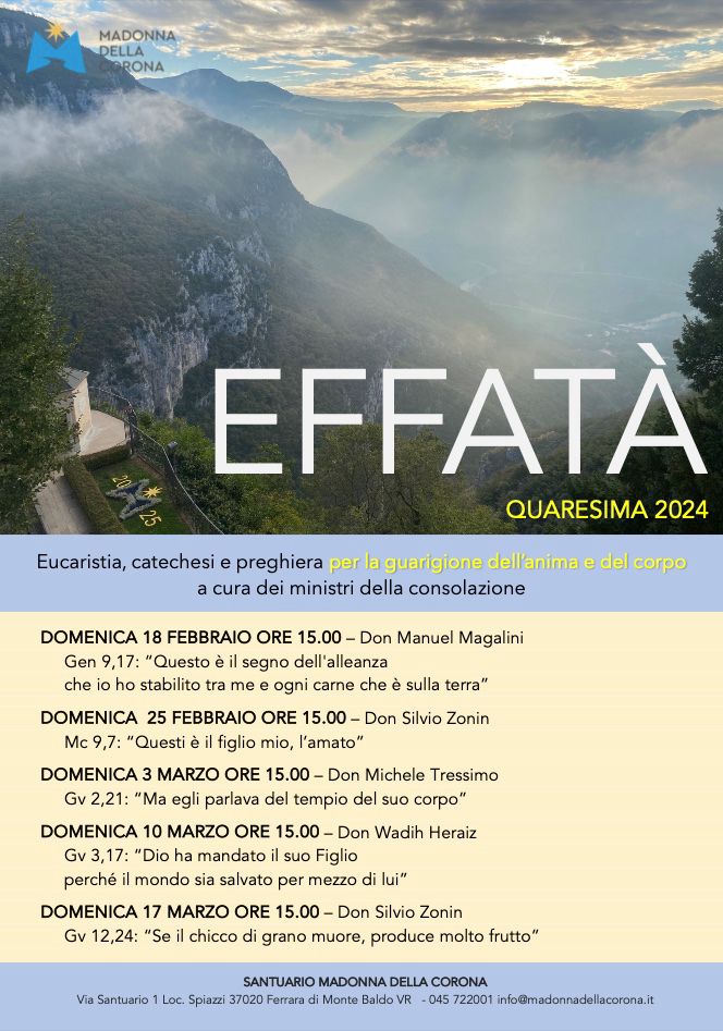 Torna per la Quaresima 2024 la preghiera Effatà al Santuario di Madonna della Corona.