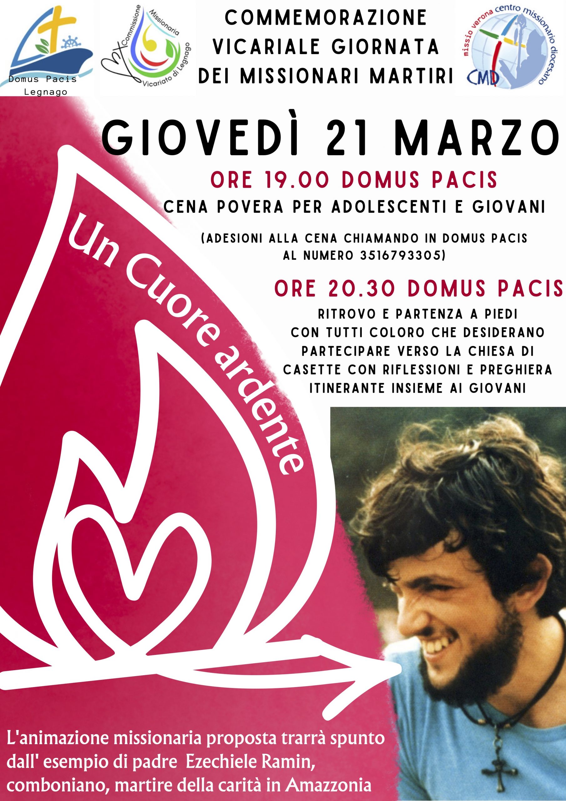 - VICARIATO DI LEGNAGO organizza alle 19.00 una cena povera per adolescenti e giovani e alle 20.30 riflessione e preghiera itinerante con partenza dalla Domus Pacis