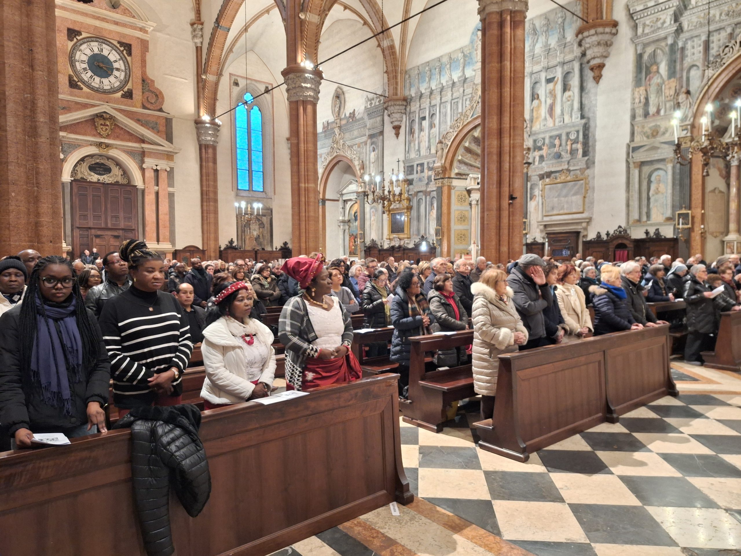Il vescovo Domenico ha presieduto in Cattedrale la tradizionale celebrazione dei popoli presenti a Verona nella solennità dell’Epifania. Canti, danze e preghiere nelle diverse lingue e secondo le differenti culture, seguendo la via della fraternità e della prossimità che, ha sottolineato mons. Pompili, è quella che il Vangelo ci indica, anche attraverso l’esperienza dei Magi.