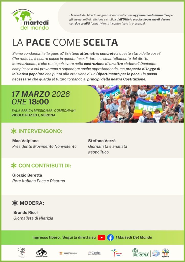 - 17 marzo: La pace secondo Trump…. ovvero la pace che non c’è – appuntamento extra, in collaborazione con la Scuola di Pace della diocesi di Verona