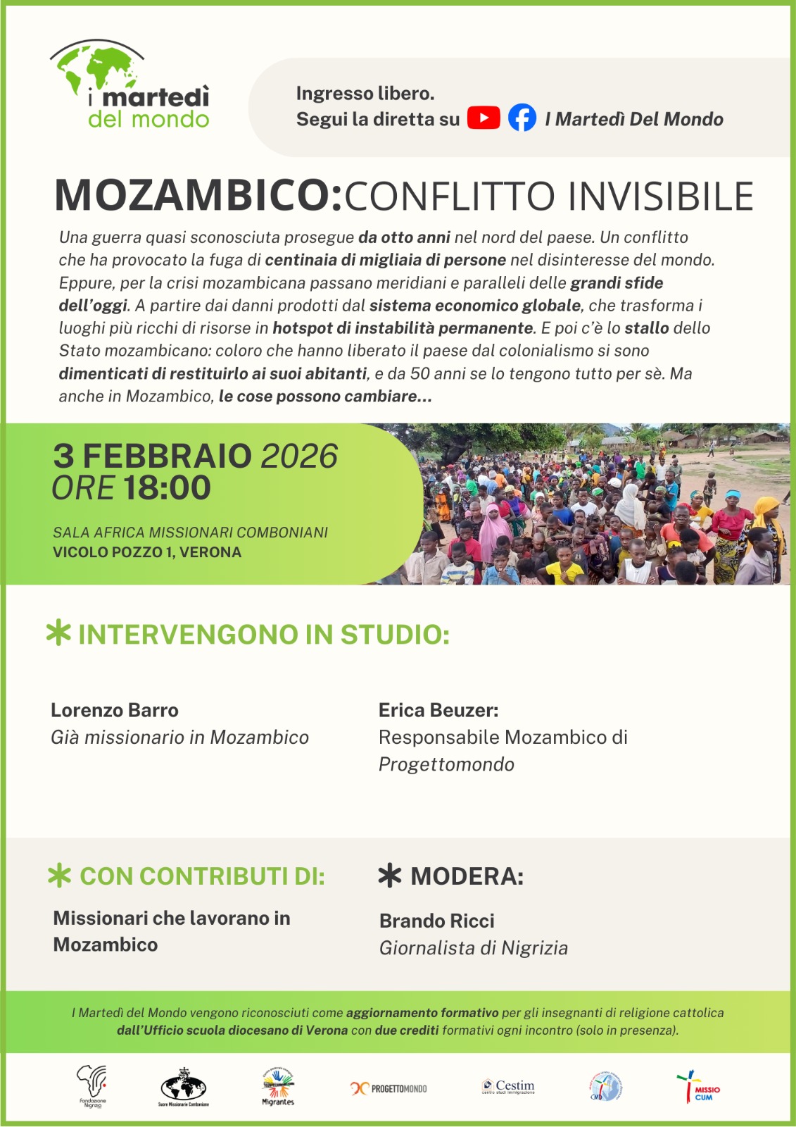 Di seguito, il calendario degli incontri che si svolgeranno sempre il martedì presso Sala Africa nella Casa Madre dei Missionari Comboniani (e in diretta su Youtube e Facebook):