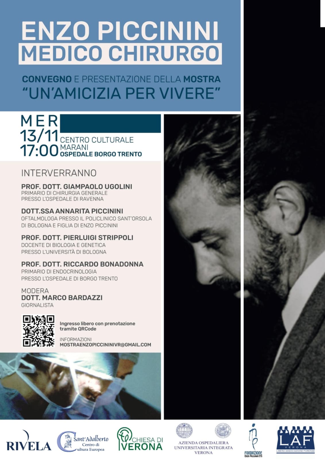 Il 13 novembre 2024, al Centro Culturale Marani dell’Ospedale Borgo Trento, si terrà il convegno dedicato al dottor Enzo Piccinini, medico chirurgo, amico di don Luigi Giussani ed instancabile educatore. L’evento costituirà anche una presentazione della mostra intitolata “Un’amicizia per vivere”, dedicata alla vita e all’opera di Piccinini.