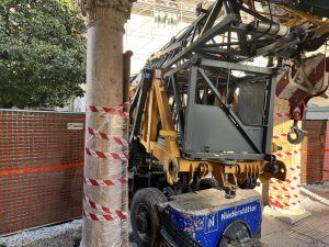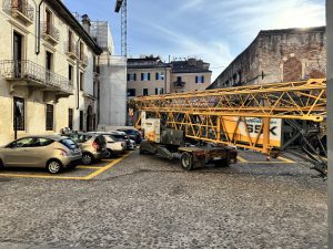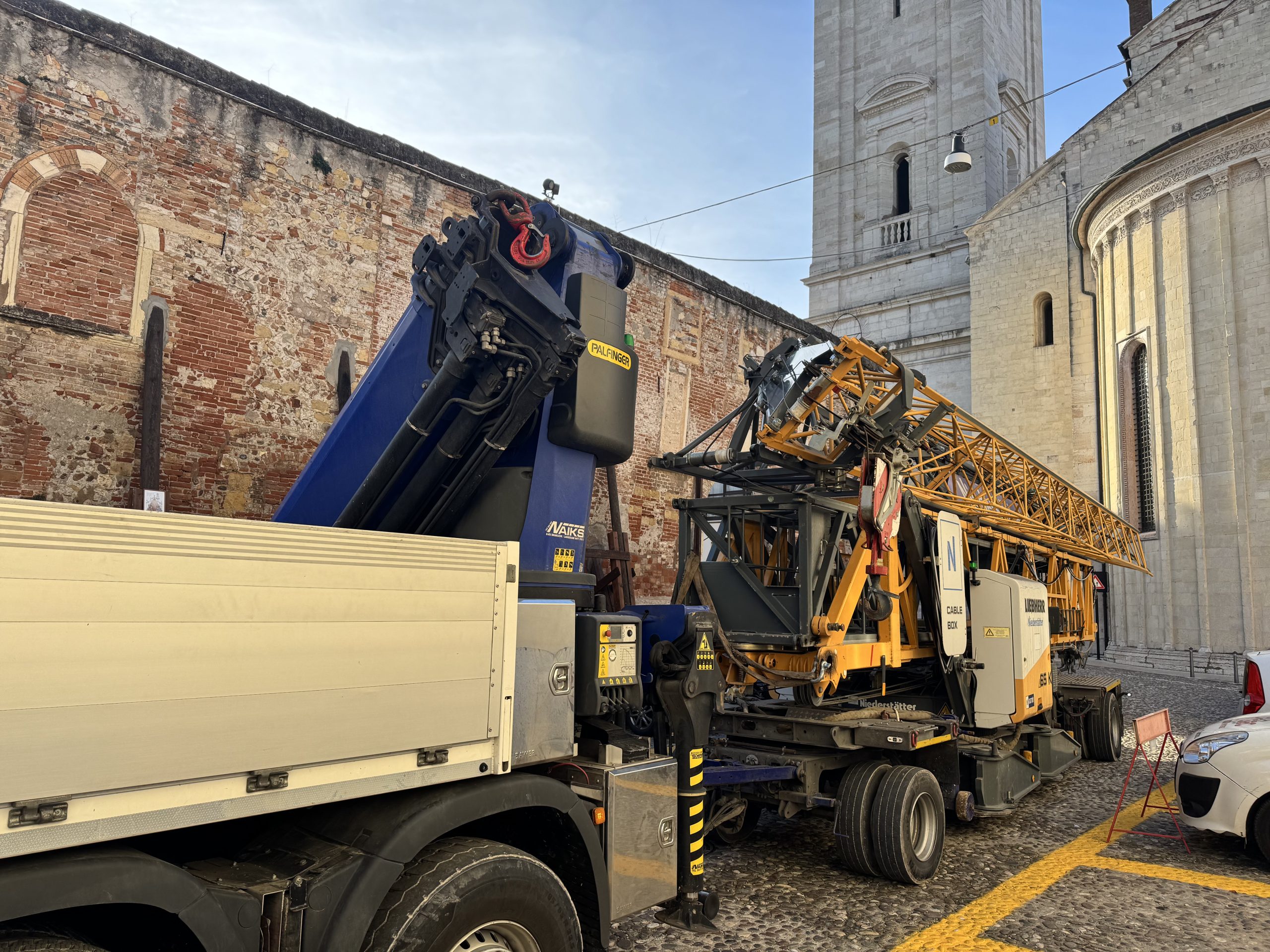 Due enormi gru Liebherr si sono innalzate in questi giorni nel giardino dell’Episcopio di Verona, con manovre spettacolari e allo stesso tempo in piena sicurezza. Si tratta di uno dei segni più evidenti del cantiere che caratterizzerà per alcuni mesi questa zona preziosa per la Diocesi e l’intera città scaligera. Spiega l’architetto Stefano Gregolo, responsabile del Servizio patrimonio immobiliare e del Servizio prevenzione e protezione della Diocesi: «Si tratta di lavori di miglioramento sismico del Palazzo vescovile e della Torre del vescovo Ognibene. Questi importanti lavori finanziati con il Piano nazionale ripresa resilienza (Pnrr) saranno di particolare importanza per la sicurezza sismica delle strutture e dei fruitori delle stesse. Gli interventi di progetto, dato il poco tempo concessoci dal finanziamento pubblico, saranno progressivi ma estesi e interesseranno coperture, solai e consolidamenti di strutture. Anche ampi spazi esterni del Vescovado saranno interessati dai lavori. Dopo mesi di progettazione, il 12 novembre abbiamo consegnato i lavori all’Impresa Bottoli e, con contratto attivato in via d’urgenza secondo la disciplina degli appalti, il 20 dello stesso mese si sono avviati ufficialmente, con termine previsto, salvo eventi eccezionali, per Giugno 2026».