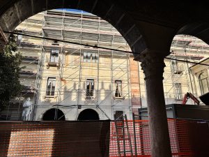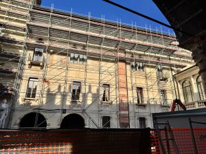Per l’intero periodo di questi lavori rimangono invariati tutti gli Uffici e le attività di Curia, a partire da quelle del Vescovo, così come l’accesso dal portone di piazza Vescovado 7, che diventa però solo pedonale visto che il cortile è area operativa di cantiere con l’installazione di ponteggi, gru e deposito corrente di materiale edilizio. Non è quindi più possibile per ragioni di sicurezza parcheggiare all’interno del cortile principale, ma accedendo a piedi si viene indirizzati agli uffici di interesse tramite apposita infografica e percorsi protetti, per garantire la sicurezza dei transiti interni.