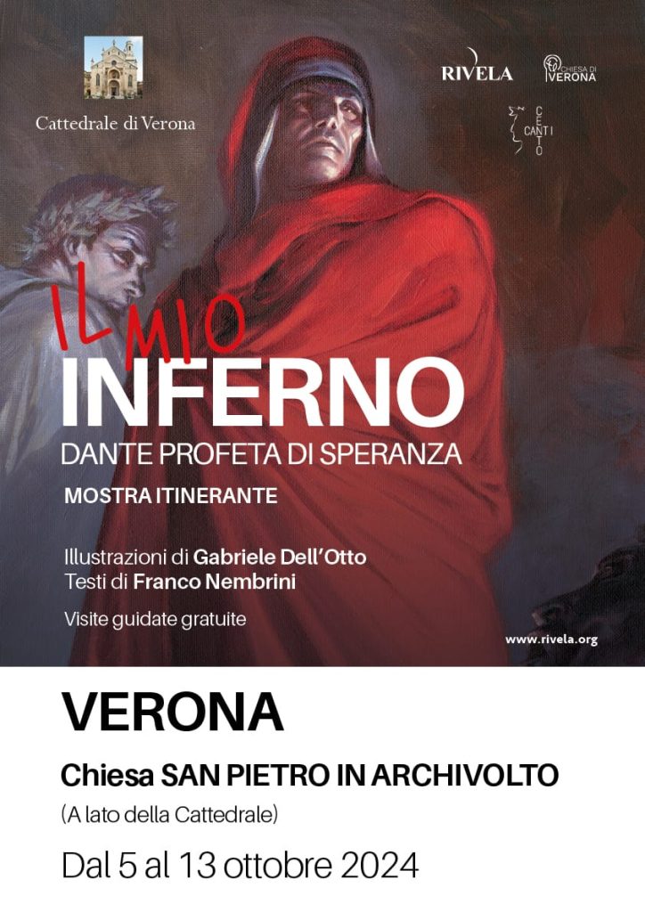 L’esposizione “Il mio Inferno. Dante profeta di speranza” è visitabile gratuitamente fino a domenica 13 ottobre, dal lunedì al venerdì dalle 15.30 alle 18.30 e sabato e domenica negli orari 10-12.30 e 15.30-18.30.