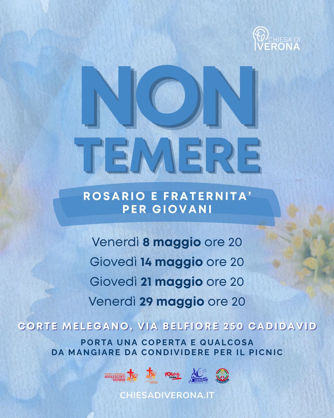Nel mese di maggio, dedicato a Maria, nasce “Non temere”, un’iniziativa pensata per i giovani della Diocesi di Verona che desiderano ritrovarsi per condividere un momento di preghiera e fraternità.