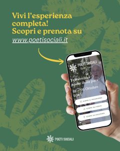 Poeti Sociali è un format che ci accompagnerà di anno in anno. Fraternità è il nome della pace è il titolo e il tema della seconda edizione, ed esprime la volontà di far risuonare parole e linguaggi che sappiano raccontare esperienze e iniziative generative (poiesis)