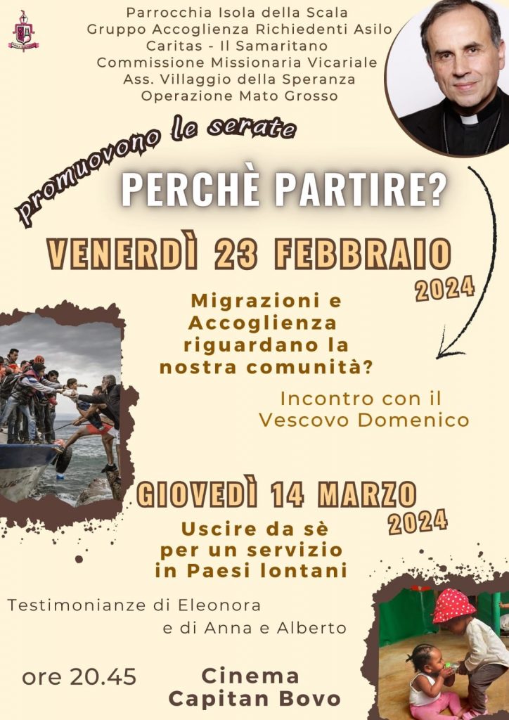 Perché se da un lato c’è chi arriva, dall’altra c’è chi parte. Il 23 febbraio, alla presenza del vescovo Domenico, si racconterà della meravigliosa esperienza di accoglienza di richiedenti asilo che la parrocchia di Isola porta avanti dal 2016 insieme al Samaritano con una dozzina di ospiti accolti in questi anni. Ci sarà anche spazio per capire quanto le migrazioni abbiano reale influenza sul territorio di Verona e in particolare nella zona di Isola della Scala, con un focus sulle motivazioni che spingono le persone a lasciare la loro casa e partire.