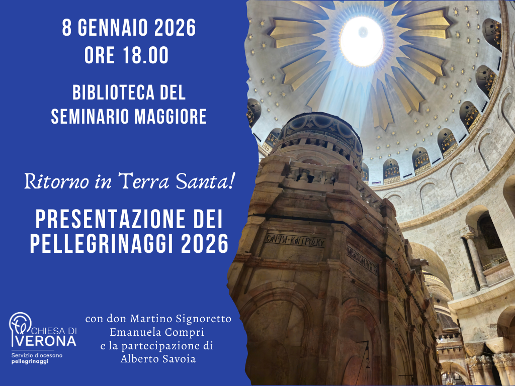 Il Servizio Pellegrinaggi diocesano invita all’appuntamento di presentazione delle proposte per l’anno nuovo 2026, giovedì 8 gennaio alle 18.00 presso la biblioteca del Seminario Vescovile.