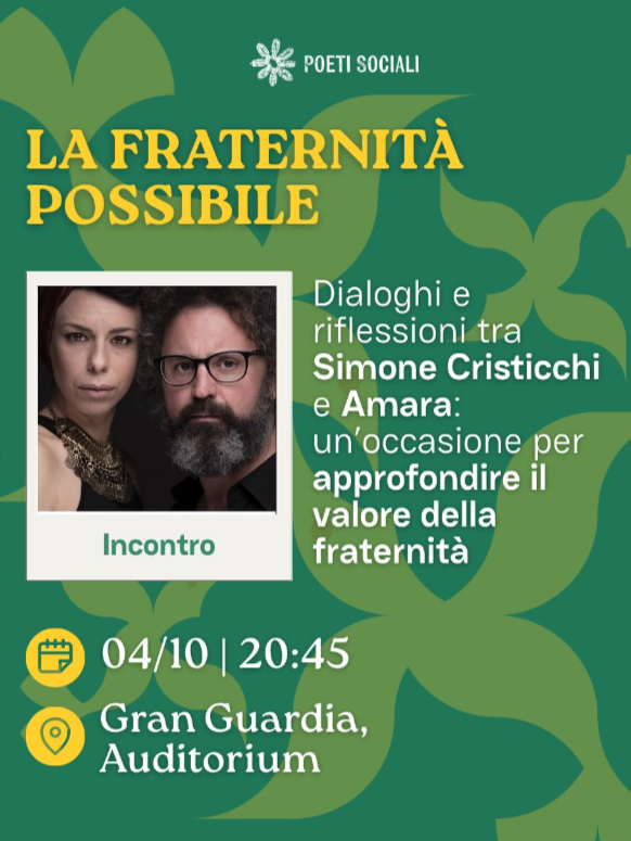 Poeti sociali è una rassegna voluta dalla Chiesa di Verona, proposta della Fondazione Toniolo, che si avvale del patrocinio del Comune di Verona, del sostegno della Fondazione Cattolica e Generali Italia, del contributo di altre associazioni e sostenitori.