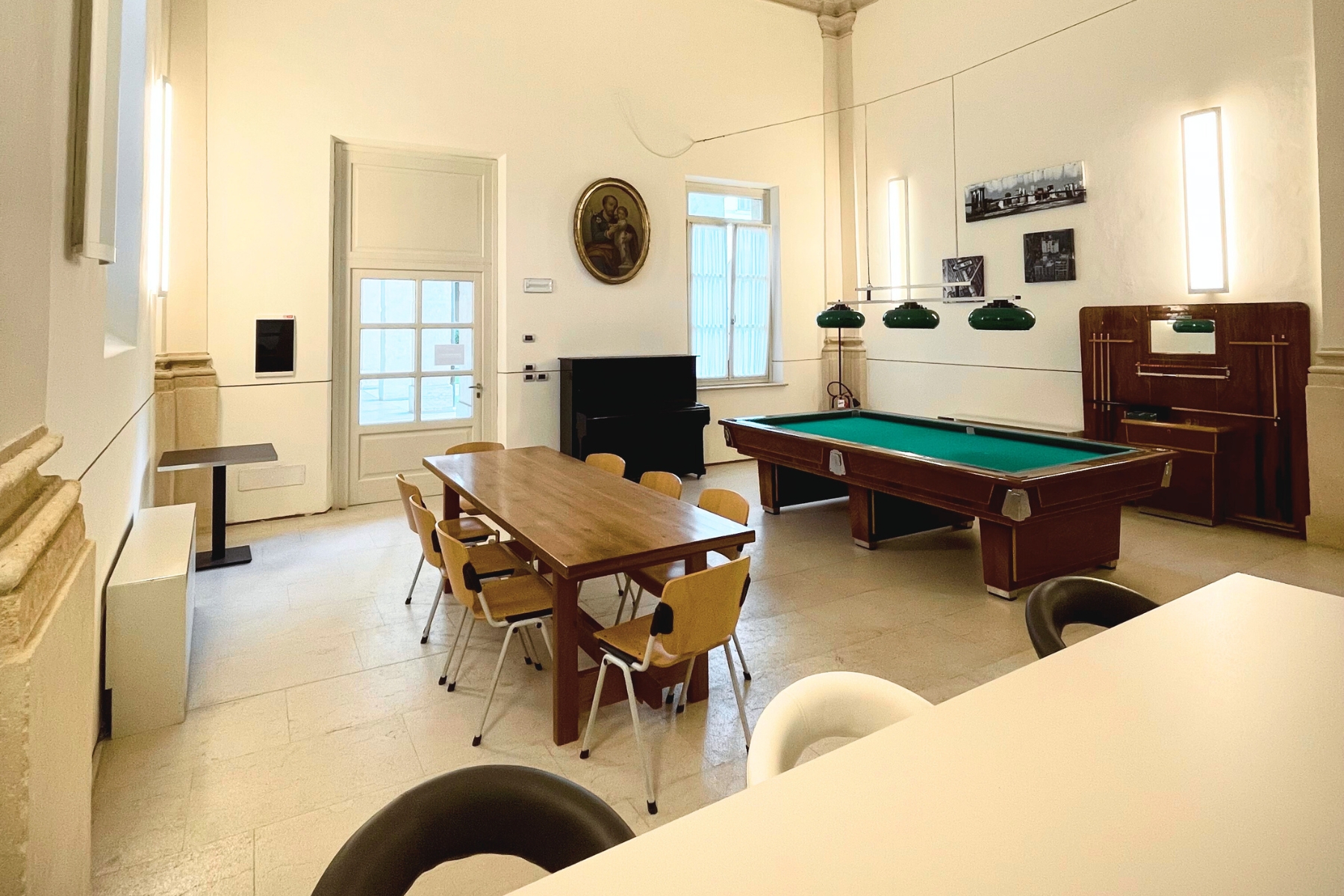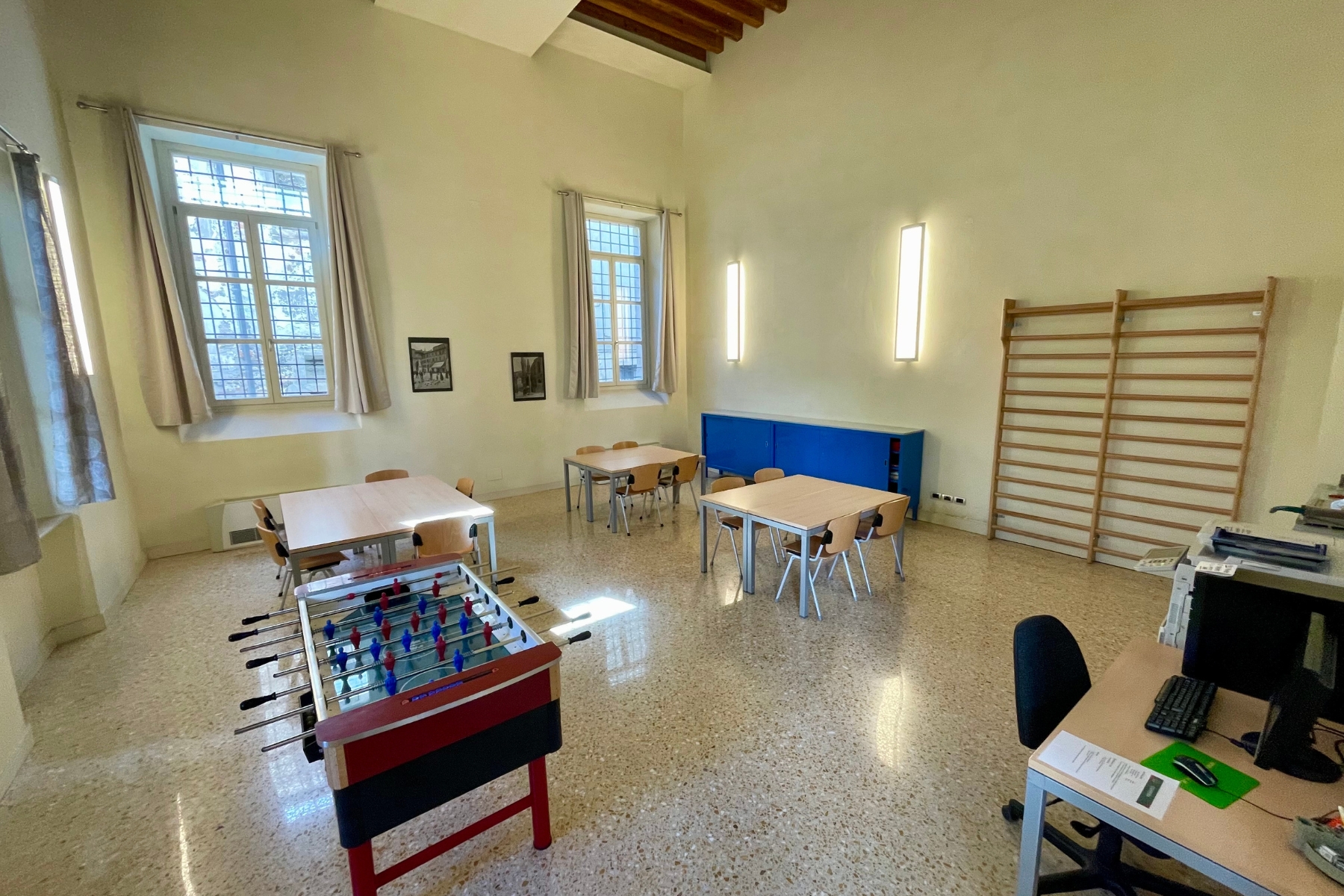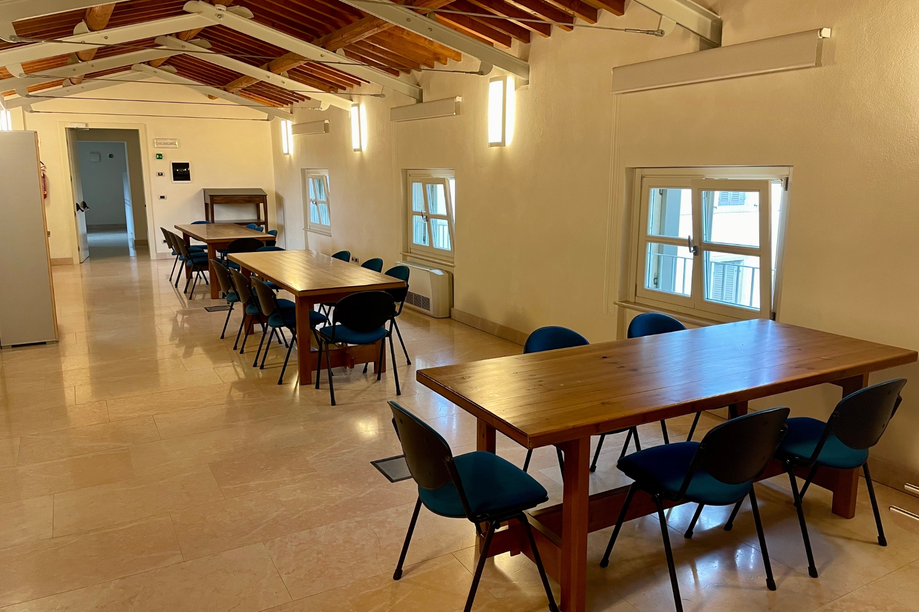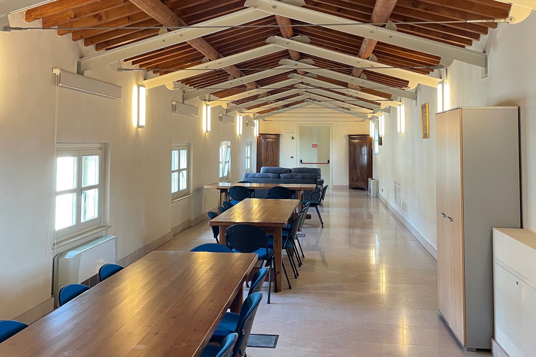 tra stamperia, aula studio, lavanderia, biblioteca, sala ristoro, parcheggio bici coperto e cortili.