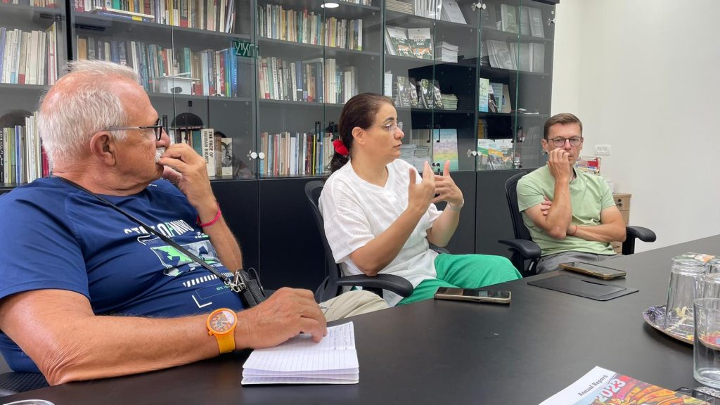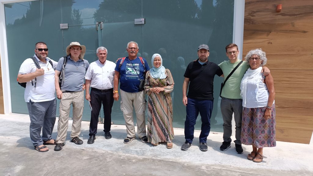 Per ascoltare anche l’esperienza di chi da anni cerca di costruire una possibilità di pace e uguali diritti per israeliani e arabi, nella giornata di venerdì 26 luglio la delegazione si è recata a Wahat al-Salam – Neve Shalom che in arabo ed ebraico significa Oasi di Pace. Si tratta di un villaggio in Israele, posto a metà strada tra Gerusalemme e Tel Aviv, fondato nel 1970, all’indomani della guerra dei sei giorni del 1967, dall’intuizione del padre domenicano Bruno Hussar che aveva origini ebraiche e una lunga esperienza di dialogo ecumenico avvalorata dalla partecipazione al Concilio Vaticano II in cui il suo contributo fu determinante per la formulazione della celeberrima Dichiarazione sugli ebrei incorporata nella “Nostra Aetate”. Il villaggio è composto circa da 70 famiglie israeliane, metà arabe e metà ebree, che vivono il reciproco rispetto e la cooperazione durante la vita di tutti i giorni, rimanendo, ogni persona, fedele alla propria identità nazionale, culturale e religiosa sia essa ebraica, islamica o cristiana. Hanno accolto la delegazione Shireen Najjar, esperta in mediazione nel conflitto, una donna araba israeliana musulmana, nata 42 anni fa da una delle prime famiglie del villaggio affiancata da Samah Salaime, nota attivista femminista palestinese e scrittrice assieme a un altro membro della comunità. Oggetto del dialogo, assieme alla storia del villaggio, sono state soprattutto le difficoltà sempre maggiori che gli abitanti di Wahat al-Salam – Neve Shalom incontrano a causa dell’inasprirsi dei rapporti interni alla società israeliana. Nel villaggio esiste una delle poche scuole dell’infanzia che va dall’asilo alla sesta elementare, completamente bilingue, con uguali ore di lezione in arabo ed ebraico a cui possono iscriversi anche le famiglie dei dintorni che ne fanno richiesta e una Scuola per la Pace che lavora con gli adulti per accrescere la consapevolezza della complessità del conflitto e trovare via di dialogo e mediazione per la comprensione reciproca tra palestinesi ed ebrei.
