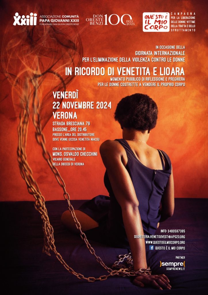 In occasione della Giornata Mondiale per l’eliminazione della violenza contro le donne, si terrà venerdì 22 novembre alle ore 20.45, presso il distributore di benzina in Statale Bresciana, 79, un momento pubblico in ricordo di Venetita e Lioara, uccise a causa della prostituzione.