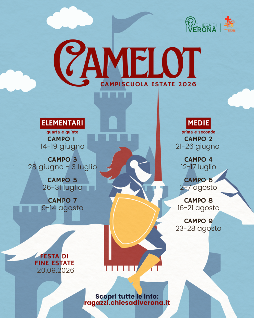 Il tema, Camelot: un viaggio simbolico nel cuore del mondo cavalleresco, dove castelli, cavalieri e imprese leggendarie diventano lo sfondo di un’esperienza intensa, che unisce fede, valori, amicizia e divertimento.