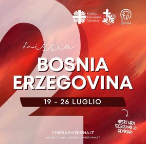 Dal 19 al 26 luglio 2025 si terrà il viaggio missionario in Bosnia Erzegovina per giovani dai 19 ai 31 anni, organizzato dal Centro di Pastorale Adolescenti e Giovani e Caritas Diocesana Veronese. In particolare, l’esperienza avrà luogo a nella Diocesi di Mostar, in collaborazione con Caritas locale.