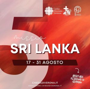 Dal 16 al 31 agosto 2025 si terrà il viaggio missionario in Sri Lanka per giovani dai 19 ai 31 anni, organizzato dal Centro di Pastorale Adolescenti e Giovani e Caritas Diocesana Veronese. In particolare, l’esperienza avrà luogo a Ratnapura, in collaborazione con Caritas locale.