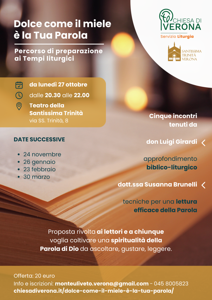 Percorso di preparazione ai Tempi liturgici, presso il teatro della parrocchia della Santissima Trinità di Verona, in collaborazione con il Servizio Liturgia della Diocesi.