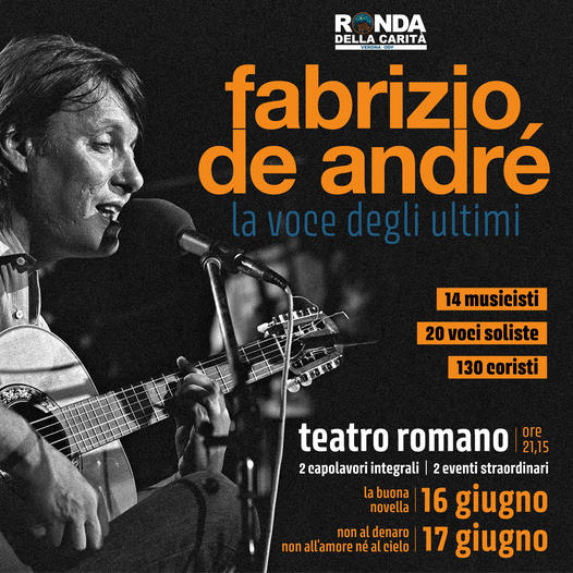 Il vescovo Domenico alla sera al Teatro Romano partecipa al concerto benefico a favore della Ronda della Carità “FABRIZIO DE ANDRÉ, la voce degli ultimi” (ore 21.15).