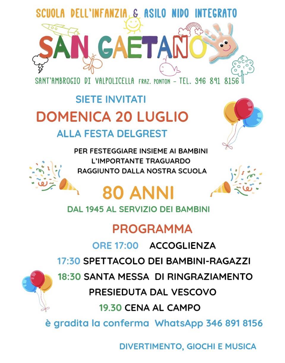 Domenica 20 luglio sarà celebrata la Messa in occasione dell’80esimo anniversario della scuola dell’infanzia paritaria e nido integrato “San Gaetano” di Ponton, presieduta dal vescovo Domenico Pompili (ore 18.30)