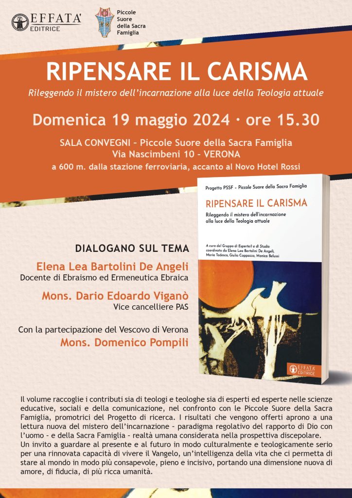 Il vescovo Domenico nel pomeriggio presso la Sala convegni della Casa regionale delle Piccole Suore della Sacra Famiglia partecipa alla presentazione del volume “Ripensare il Carisma” (ore 15.30)