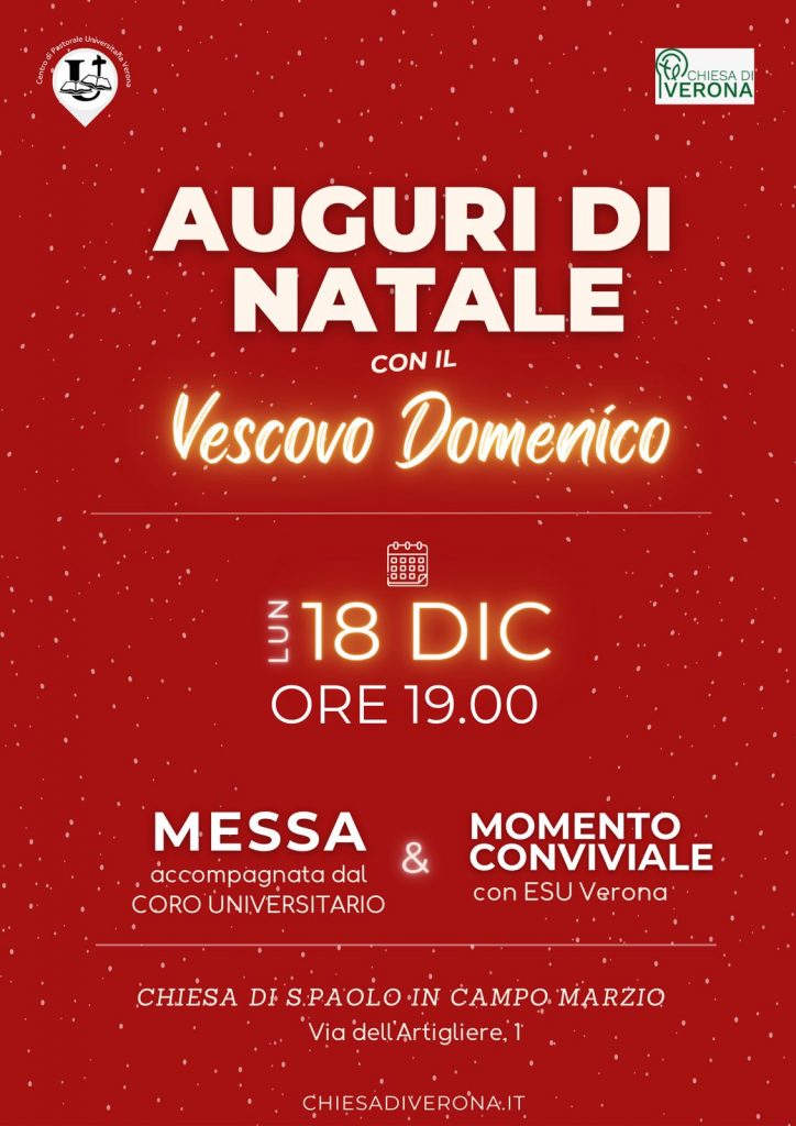 Auguri natalizi del Centro Centro di pastorale universitaria con il vescovo Domenico che celebra la S. Messa accompagnata dal coro universitario